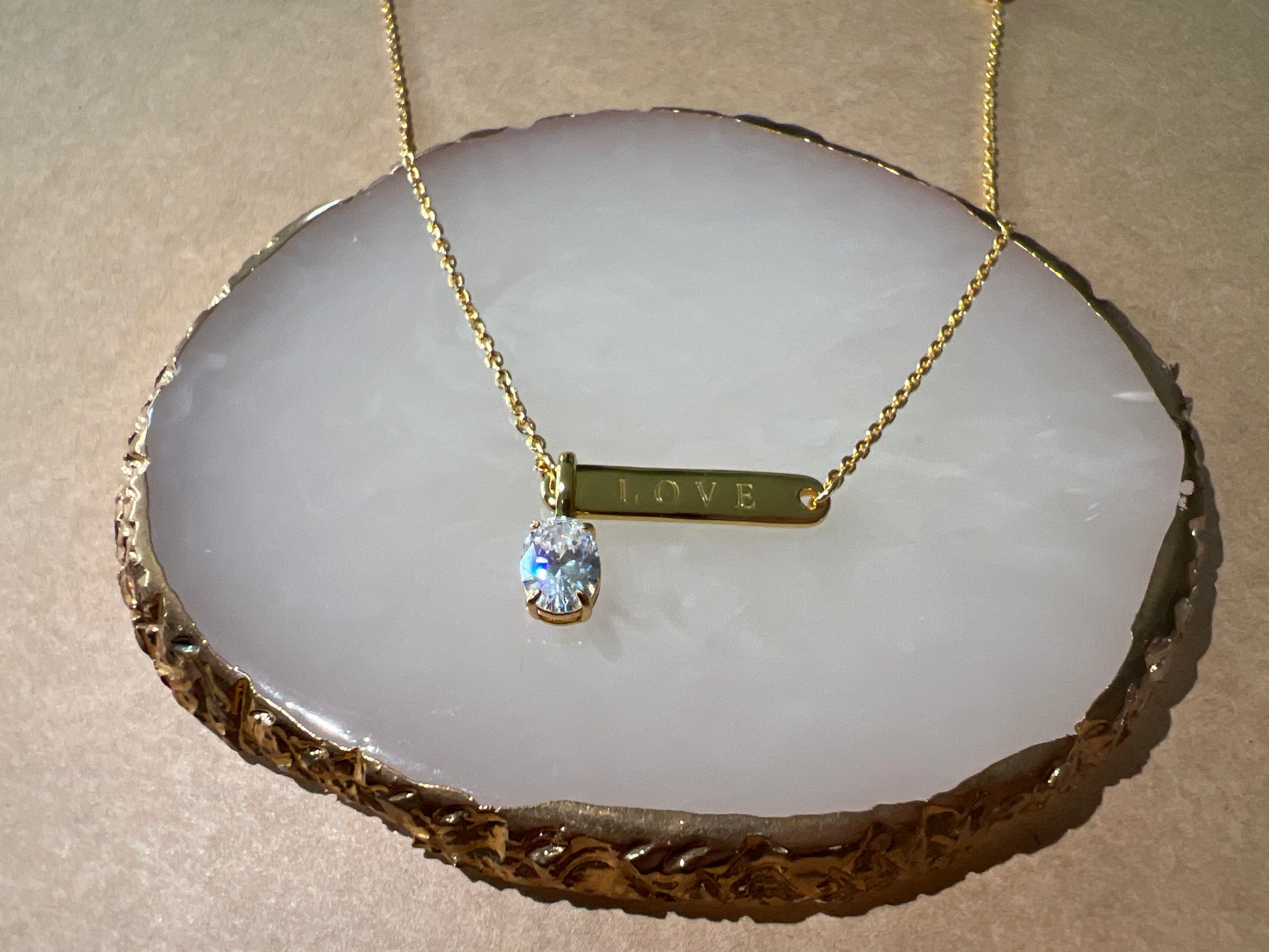 A minimal design complimented by a simple and elegant plate with the word ‘love’ on the front and back.