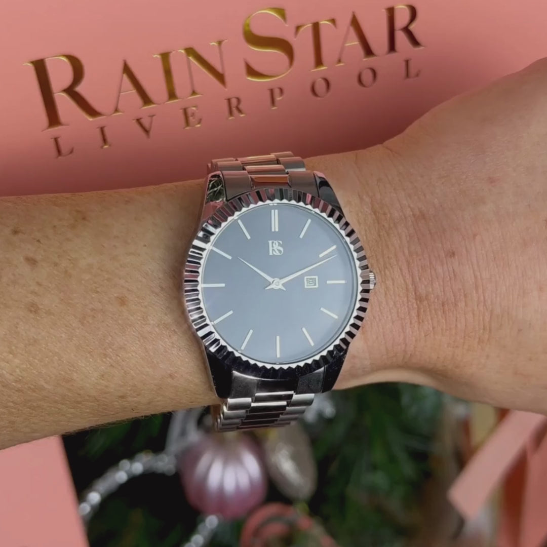 Ravella is the ultimate classic watch. Features a sleek dial with silver link bracelet and a sparkly fluted bezel. The signature twelve index polished dial makes this watch the ultimate classic with an elegant and graceful design.