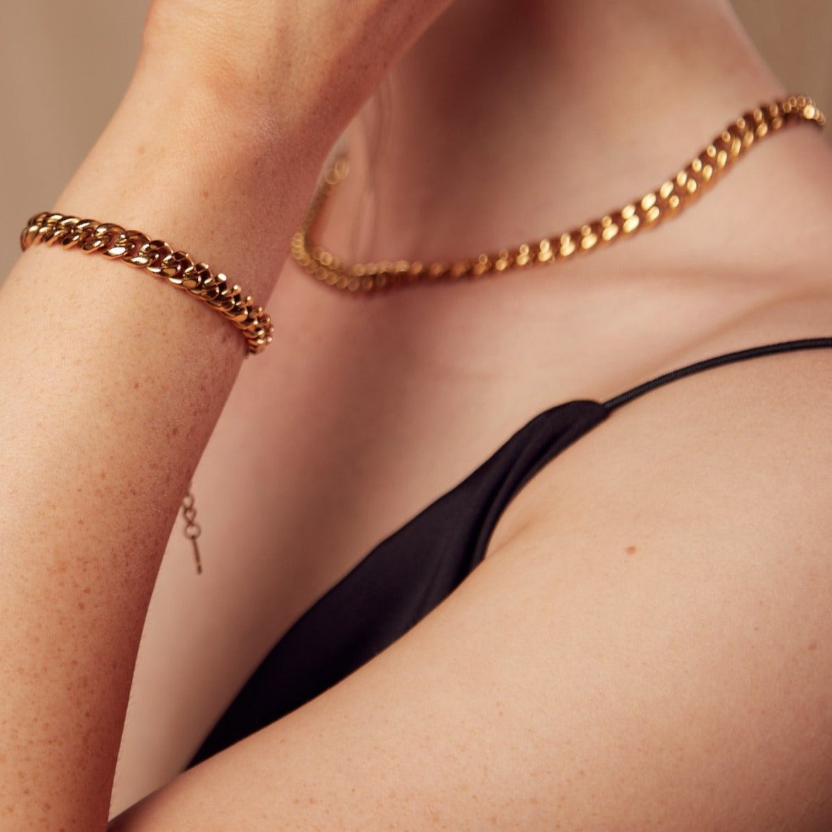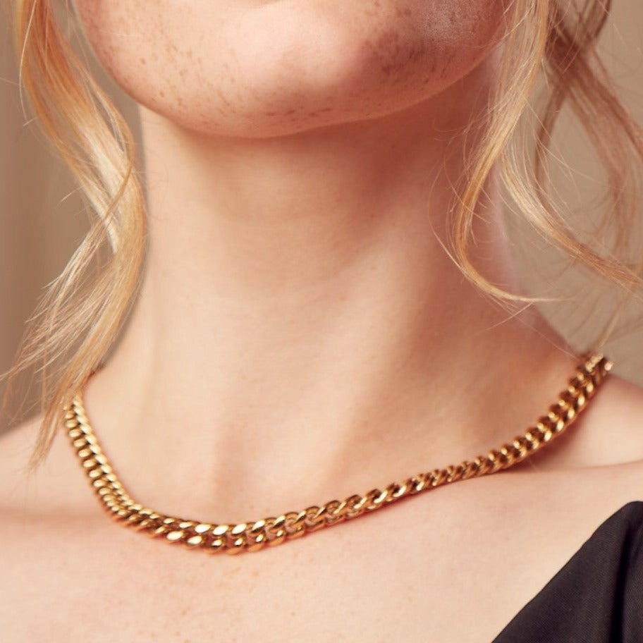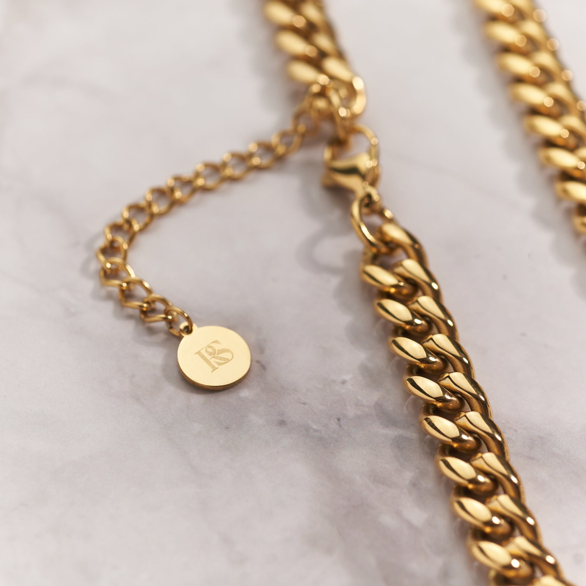 Our Roman Gold Curb Chain is the ultimate statement chain. The timeless design featuring tight-polished-flat links make this a must-have staple piece. Comes with a 3.5cm extension and branded gold disc for that added touch of luxury. Perfect addition to a layered look for that 'edgy/bold' style, or a more subtle dash of gold to make your outfit sparkle. Our latest selection of dainty chains can be found here