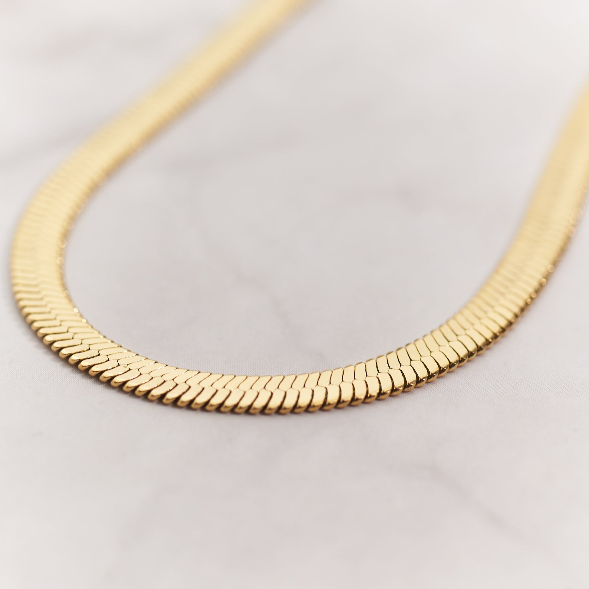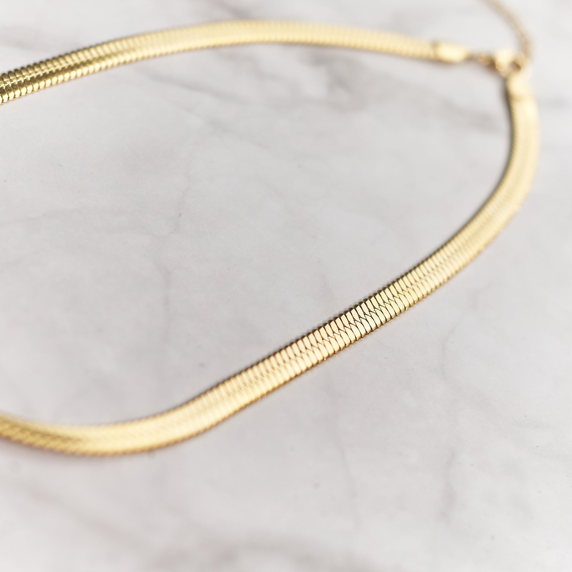 Our Snake Chain is a staple piece that everyone needs in their jewellery box. A classic look that catches the light in an effortlessly chic way! Available in two sizes. Wear with chunky chains, dainty chains, pendants - the list goes on... Find the prefect inspo here.
